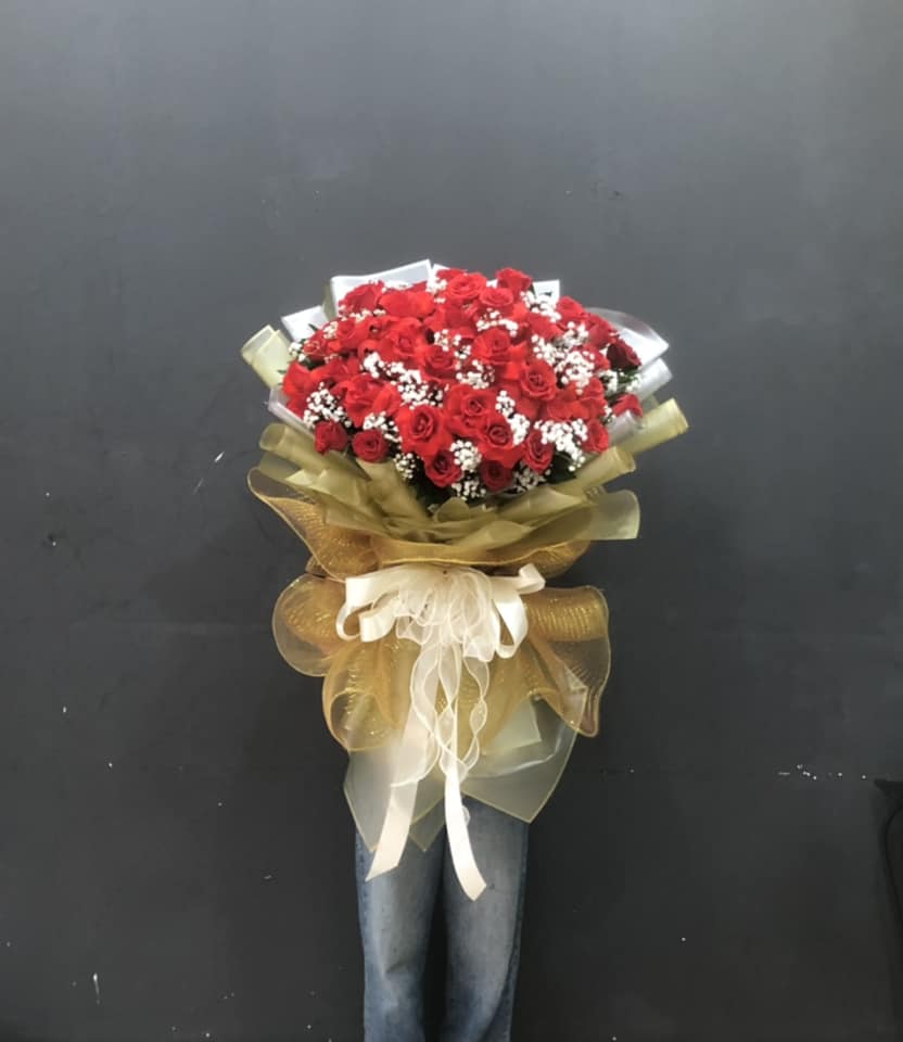 Hoa hồng đỏ được lựa chọn tỉ mỉ, bó kiểu nửa tròn, mix với baby trắng và hoa lá phụ tạo nên BÓ 99 BÔNG HỒNG ĐỎ - HB016 thật lộng lẫy mà lại sang trọng.