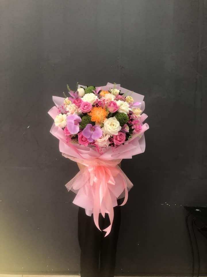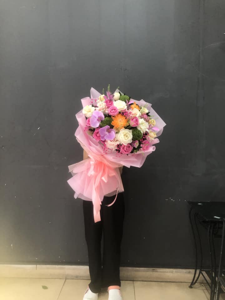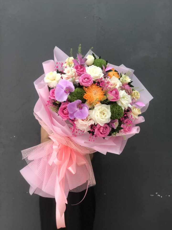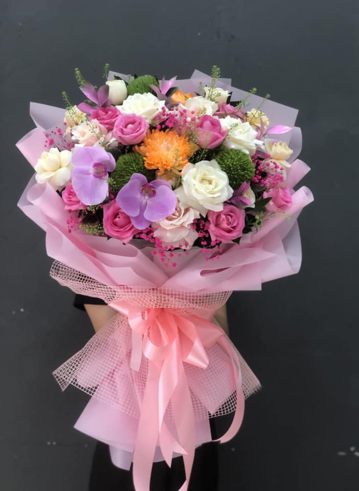 Hoa hồng được kết hợp với Lan hồ điệp, hoa cúc và hoa lá phụ tạo nên BÓ HOA HỒNG MIX LAN HỒ ĐIỆP - HB010 thật ngọt ngào nhưng không kém phần sang trọng, quý phái.