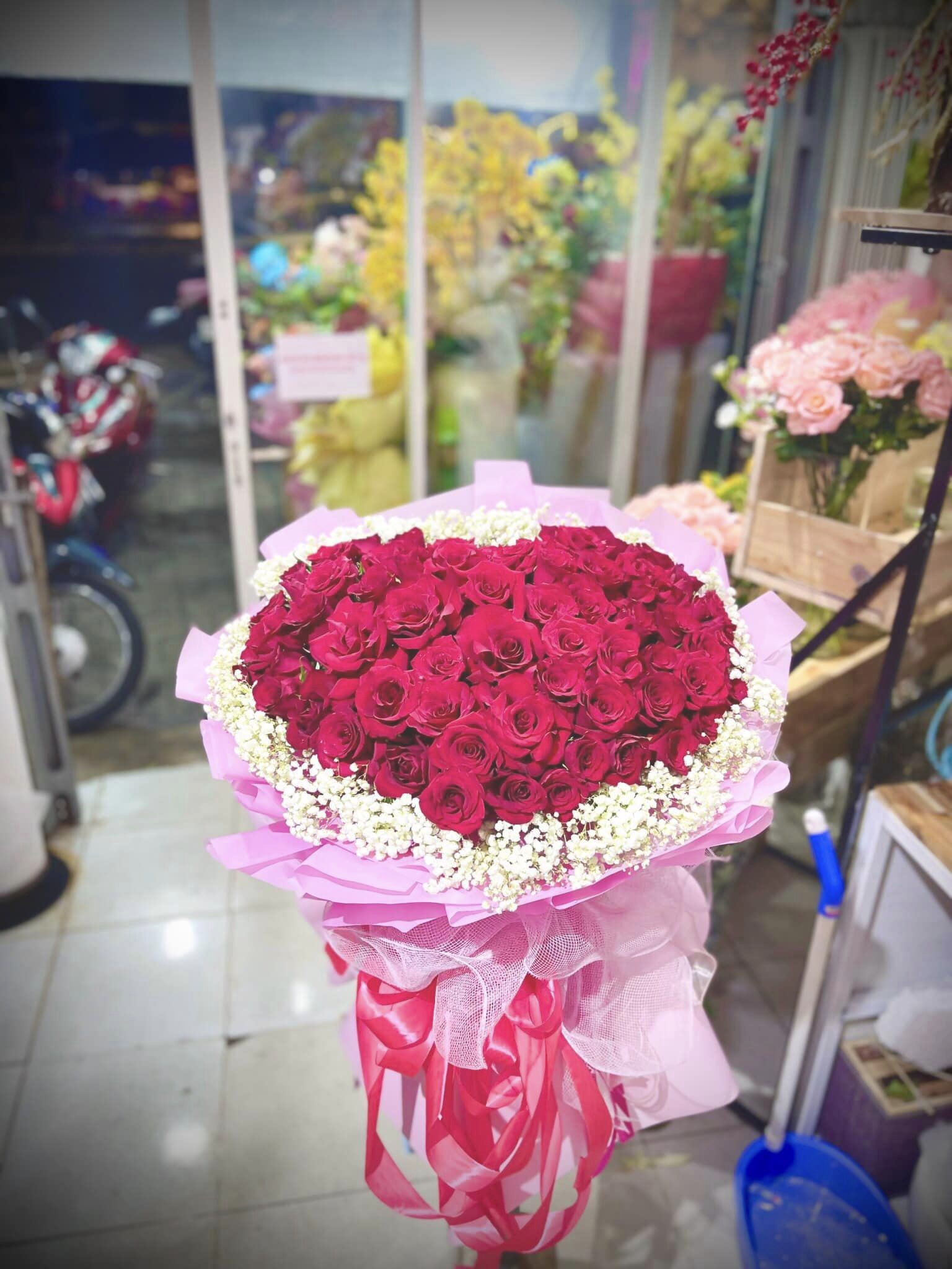 Hoa hồng được lựa chọn tỉ mỉ, cắm hình trái tim và viền Baby trắng xung quanh tạo nên BÓ HOA HỒNG TRÁI TIM - HB001 thật lộng lẫy, sang trọng.
