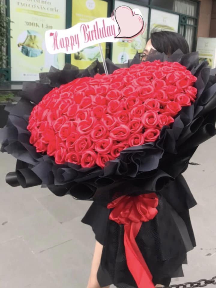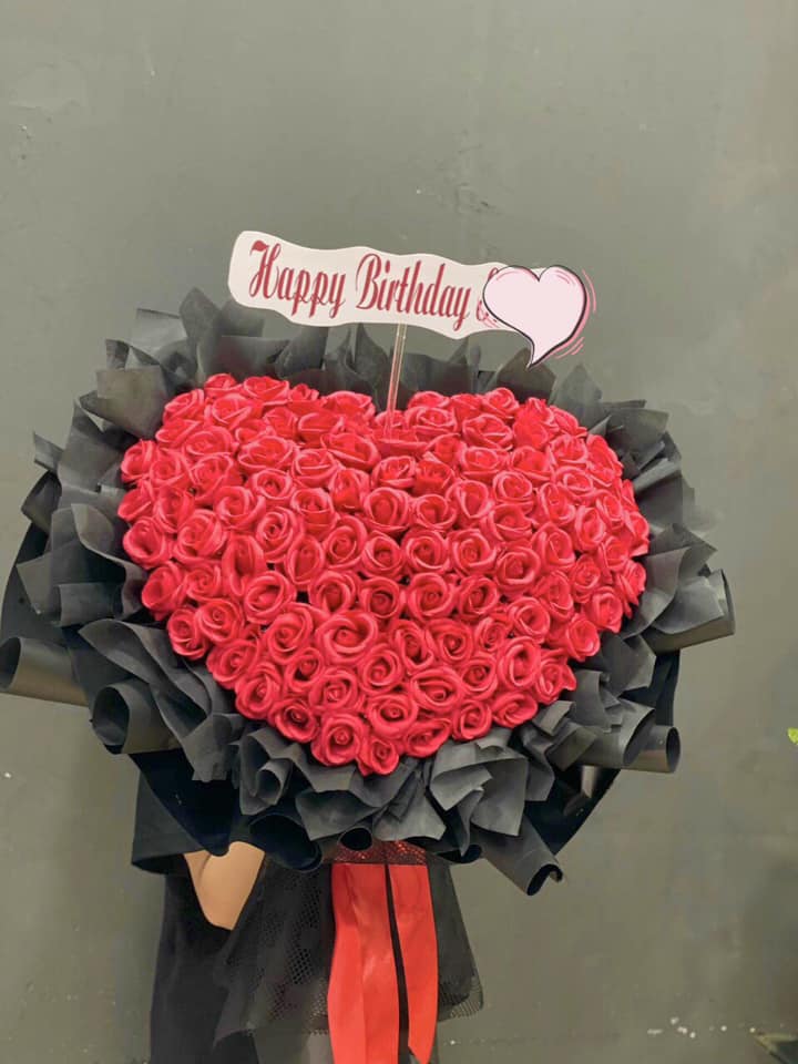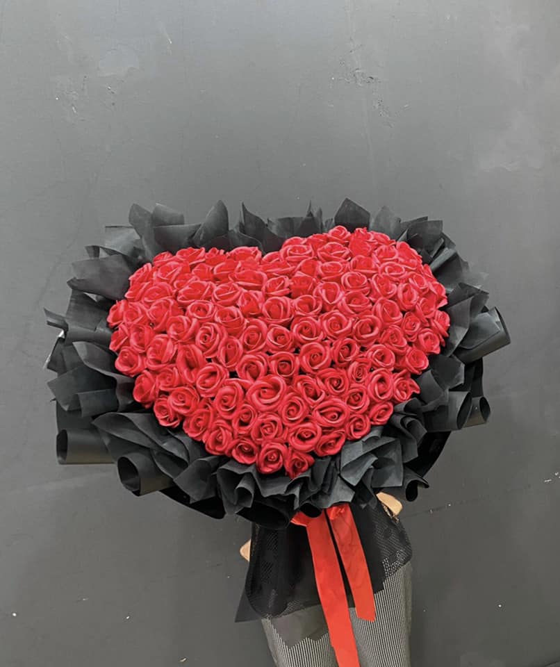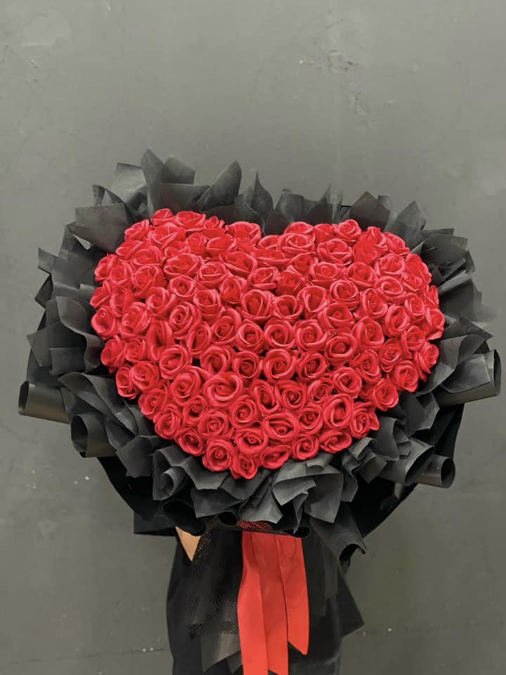 BÓ HOA HỒNG TRÁI TIM - HB002 được bó từ 100 bông hồng sáp, xếp hình trái tim kết hợp với giấy gói màu đen mang lại cảm giác sang trọng, lịch sự.