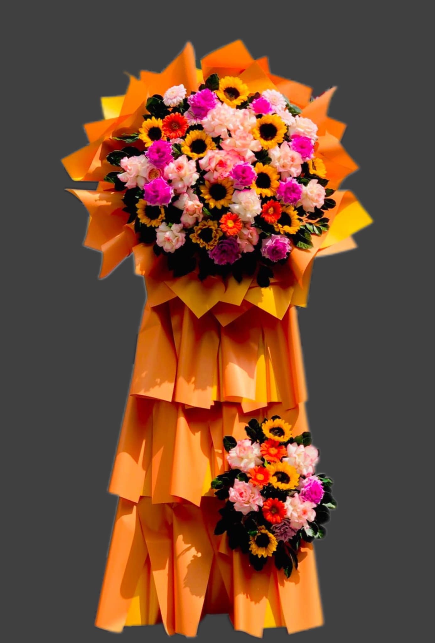 KỆ HOA CHÚC MỪNG KHAI TRƯƠNG MIX MÀU - KCM005 có thể thay đổi màu hoa, loại hoa, màu giấy cho phù hợp với Chủ đề của buổi lễ Khai trương.