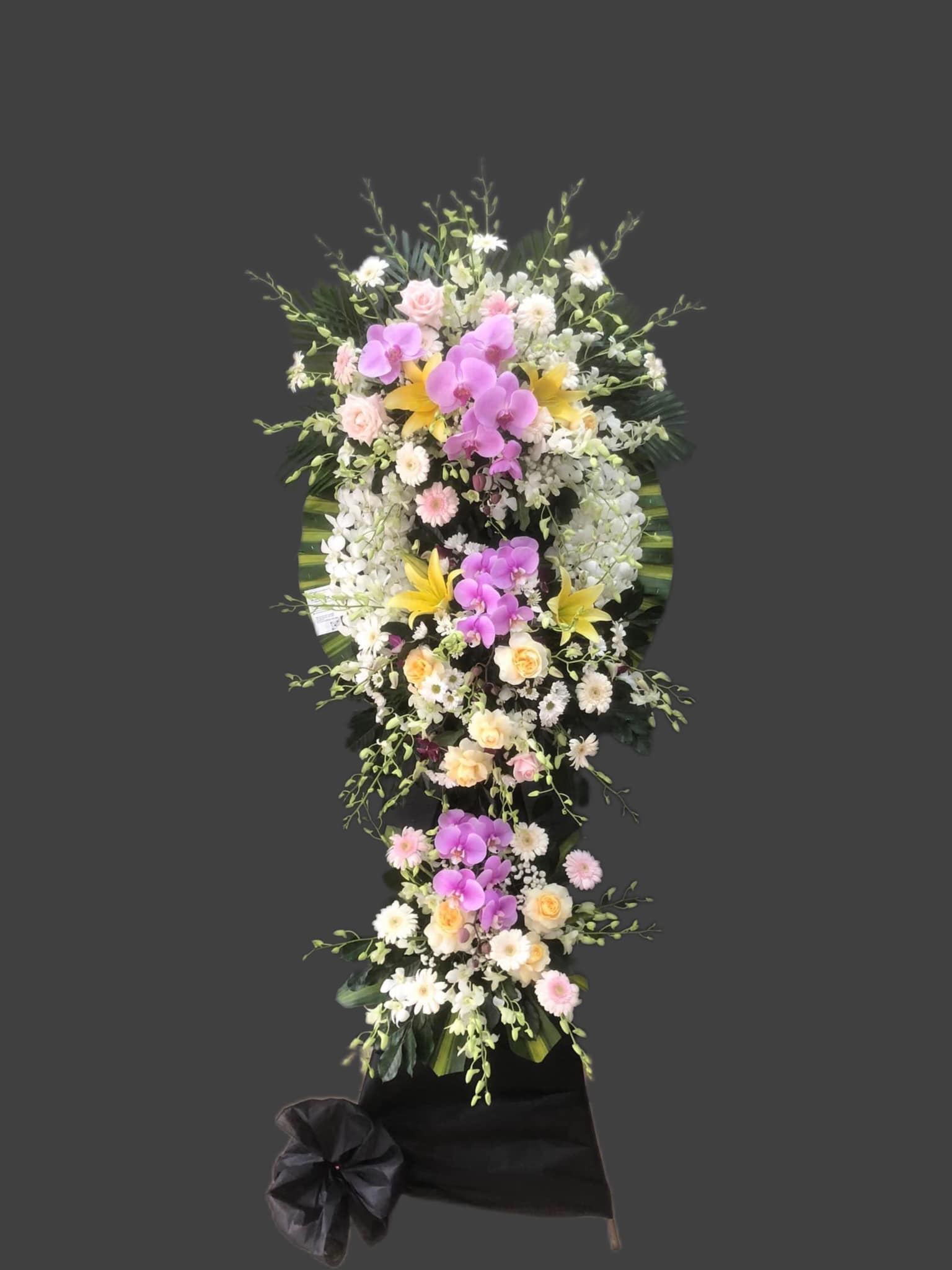 KỆ HOA VIẾNG 2 TẦNG MIX MÀU THEO PHONG CÁCH CỔ ĐIỂN- HV003 được cắm theo phong cách cổ điển, được kết hợp từ Lan thái, hoa hồng, hoa ly mix với nhau và thêm hoa lá phụ, cắm theo phong cách cổ điển tạo nên KỆ HOA VIẾNG 2 TẦNG MIX MÀU THEO PHONG CÁCH CỔ ĐIỂN- HV003 thật sang trọng.