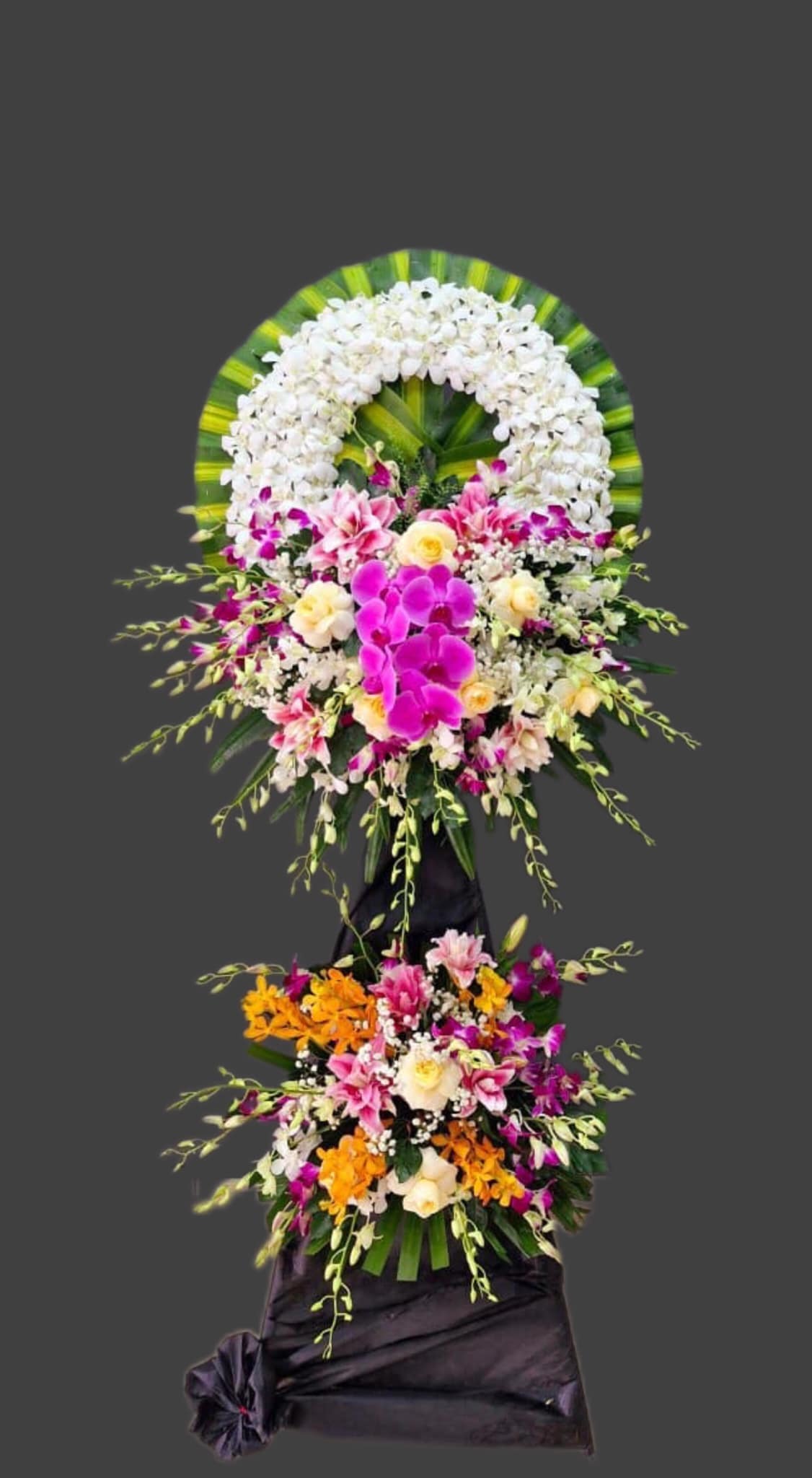 KỆ HOA VIẾNG 2 TẦNG MIX MÀU THEO PHONG CÁCH CỔ ĐIỂN- HV004 được cắm theo phong cách cổ điển, được kết hợp từ Lan thái, hoa hồng, hoa ly mix với nhau và thêm hoa lá phụ, cắm theo phong cách cổ điển tạo nên KỆ HOA VIẾNG 2 TẦNG MIX MÀU THEO PHONG CÁCH CỔ ĐIỂN- HV004 thật sang trọng.