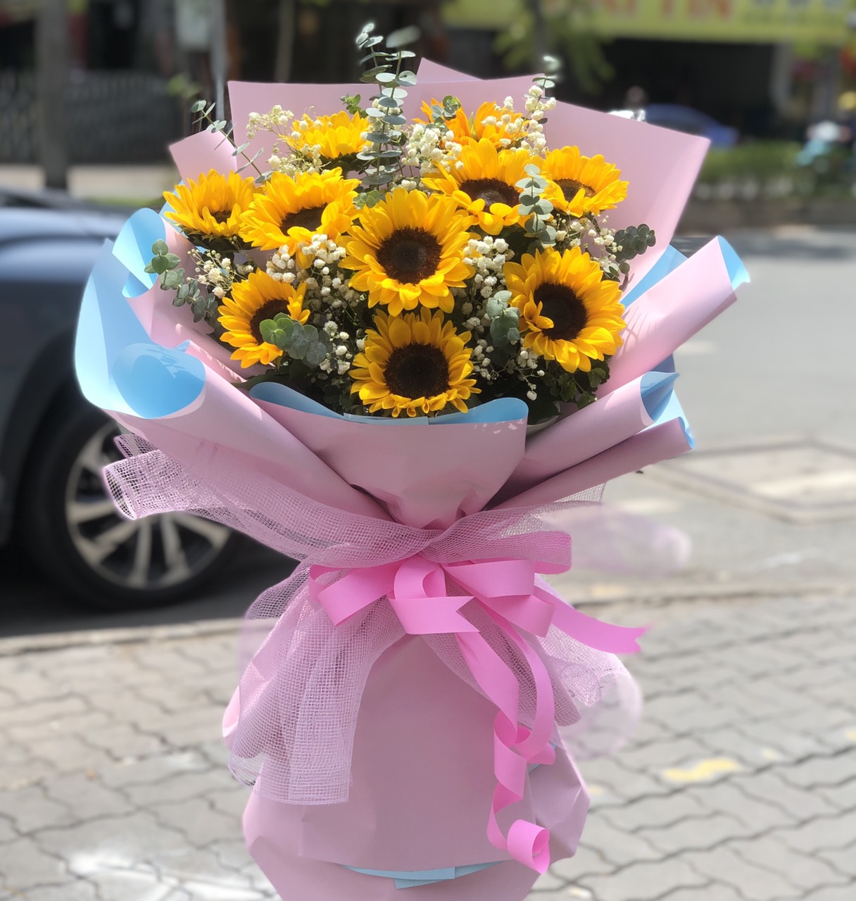 Hướng dương là loài hoa tượng trưng cho sự may mắn, hạnh phúc và cả sự thành công. Vì vậy một bó hoa hướng dương màu vàng rực rỡ sẽ thay lời chúc mừng đầy tốt lành. Để bạn từ đó gửi đến cho bạn bè, người thân và đối tác của mình nhân dịp quan trọng này.